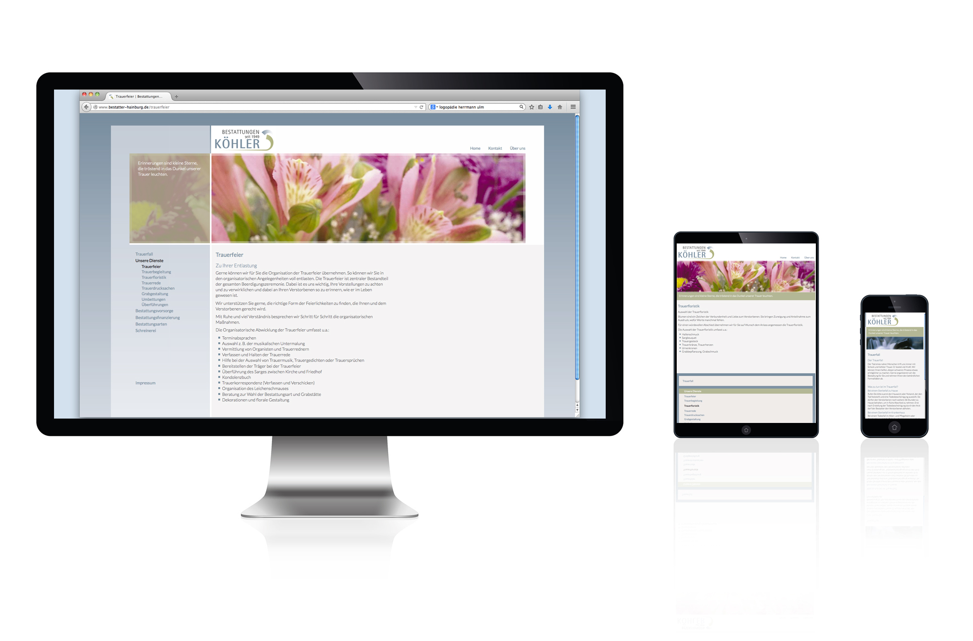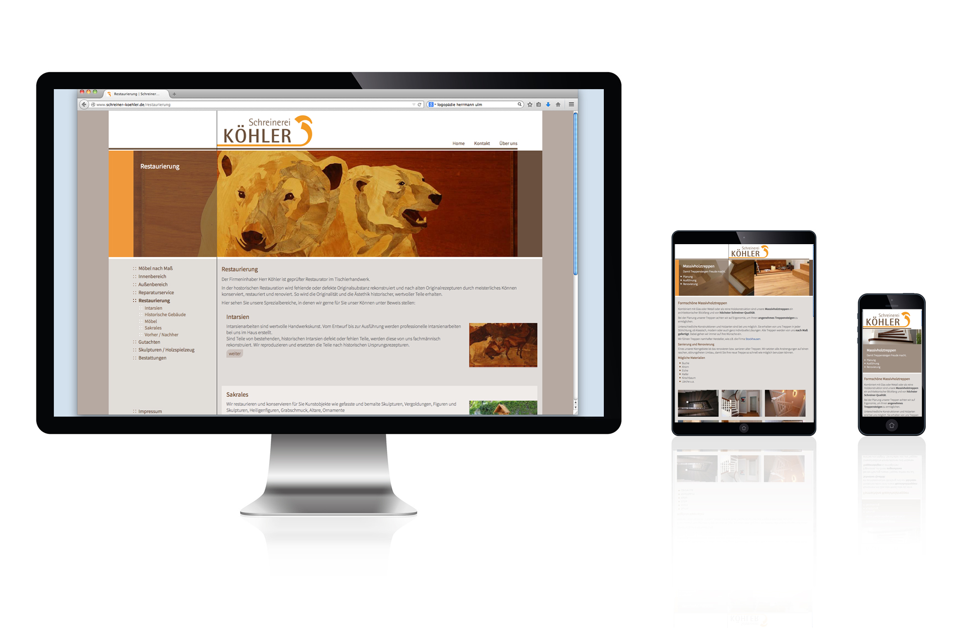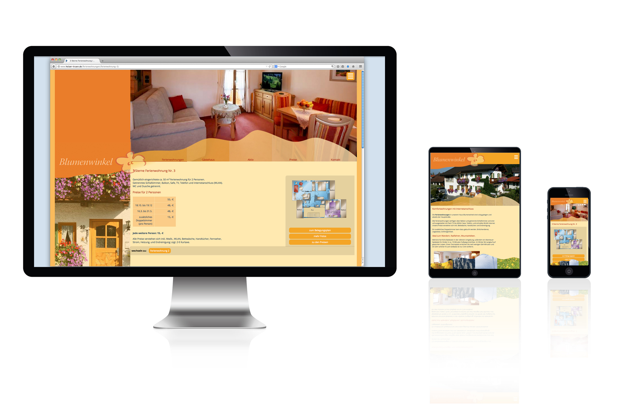 Es ist für uns eine Selbverständlichkeit, dass Ihre Website auf allen Ausgabegeräten optimal dargestellt wird und einfach zu bedienen ist. D.h. die Website passt sich an jedes Ausgabegerät, wie z.B. Smartphones oder Tablets an. Auf großen Monitoren erscheint die Seite großzügig, Bilder sind groß zu sehen, auf Tablets ist die Homepage an das jeweilige Format angepasst. Bei Smartphones und Tablets ändert sich die Anordnung von Texten und Bildern automatisch, so dass nicht ständig gezoomt werden muss. Auf Handys erscheint Ihr Auftritt im dafür sinnvollen Format. Texte, Bilder und Menüs stehen untereinander.